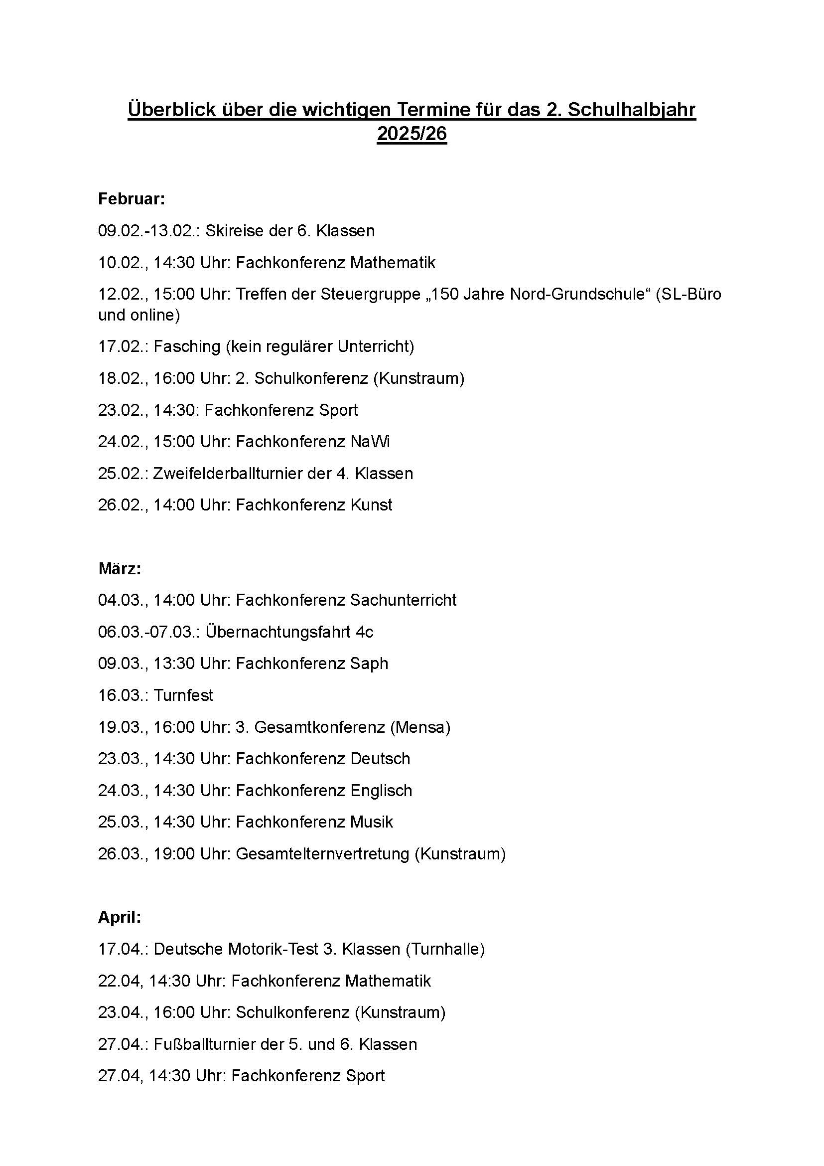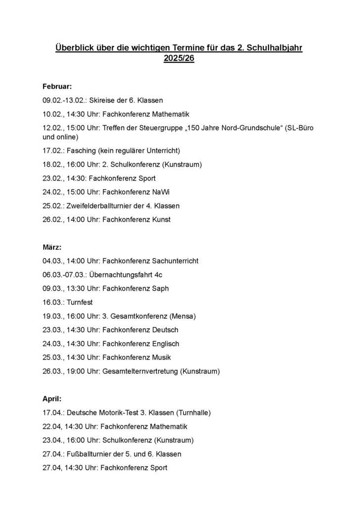 Hier finden Sie einen Überblick über die wichtigen Termine im 2. Halbjahr 2025/26